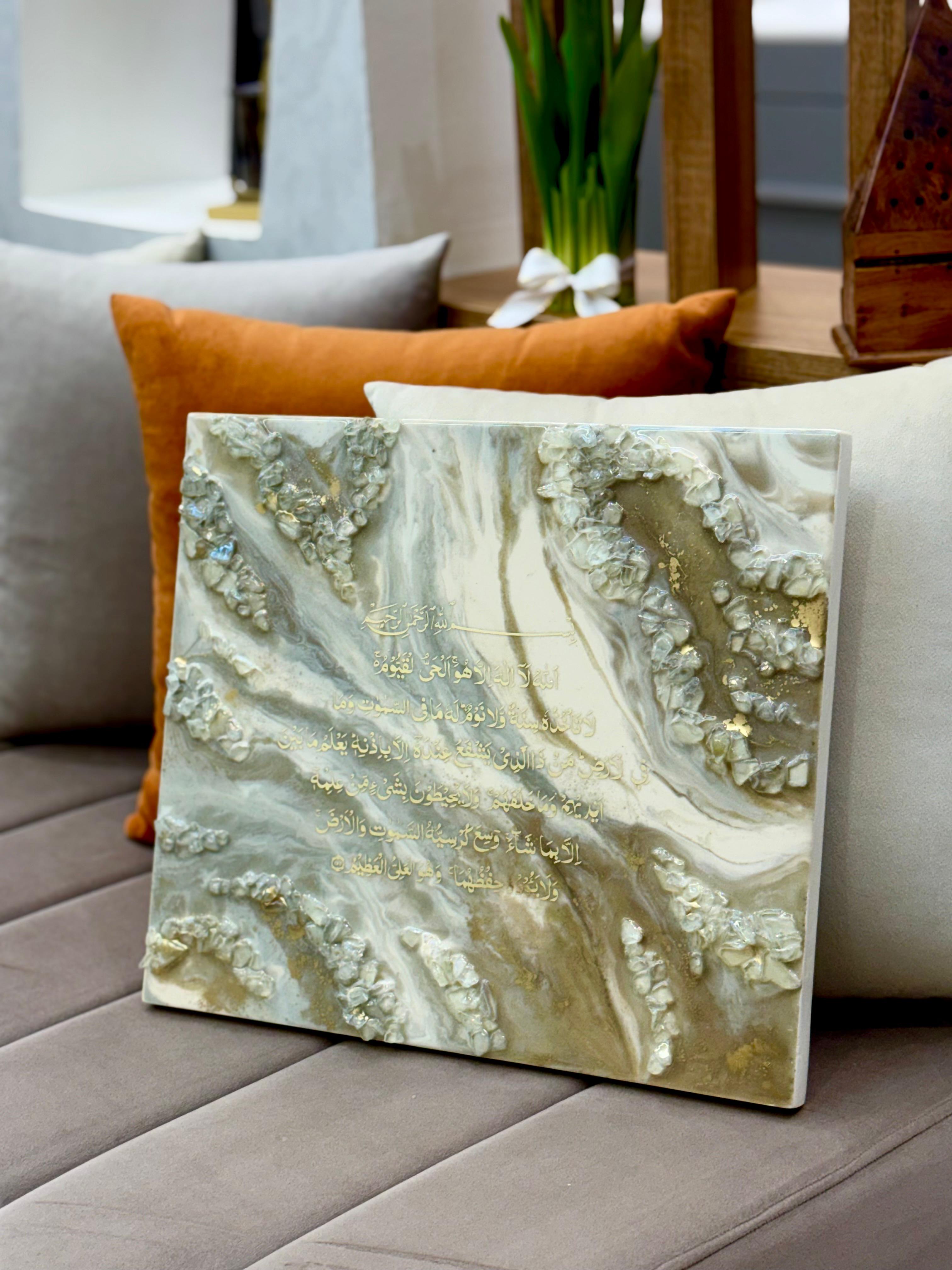 Tableau Ayat Al-Kursi en résine beige & cristal
