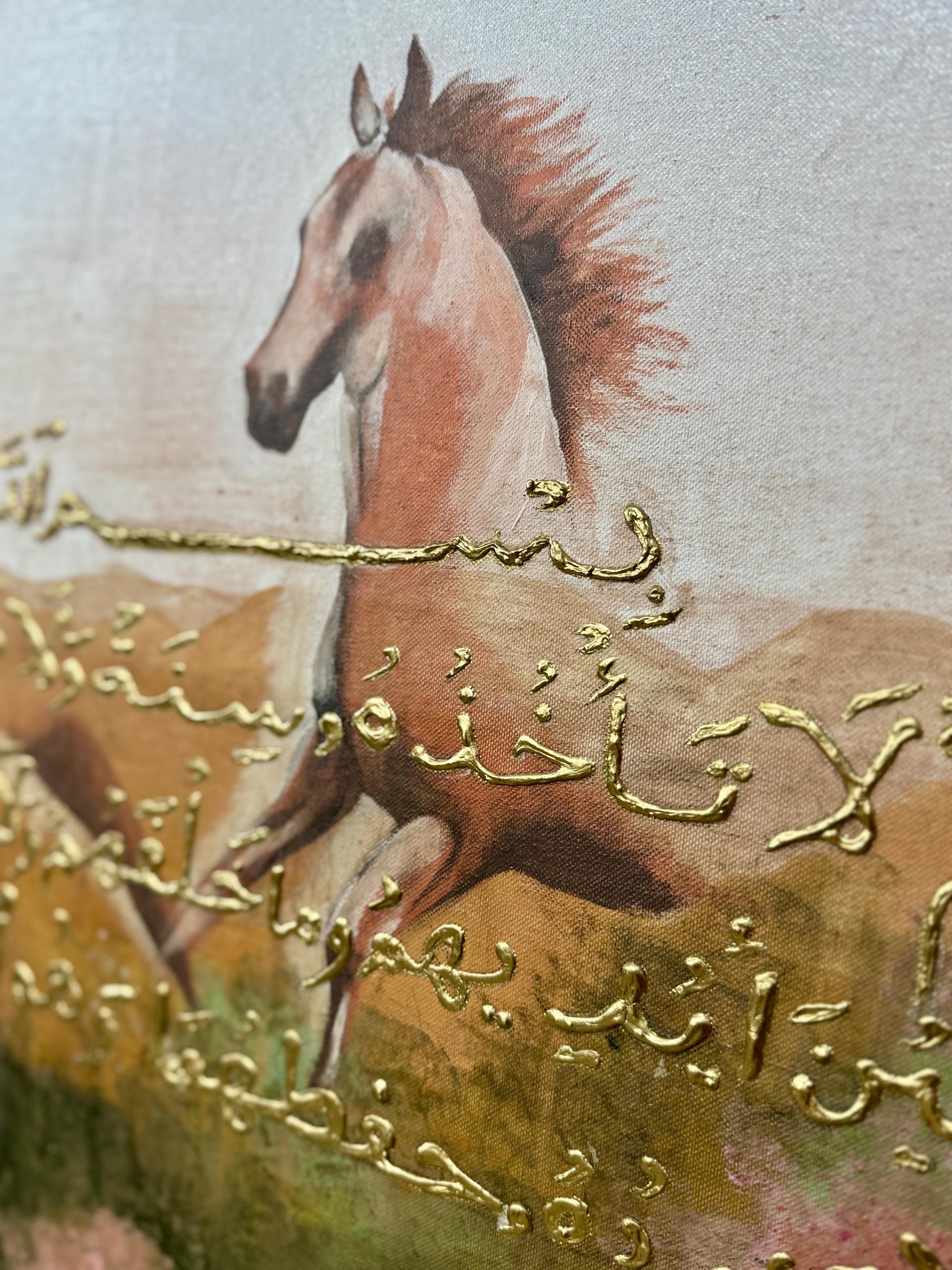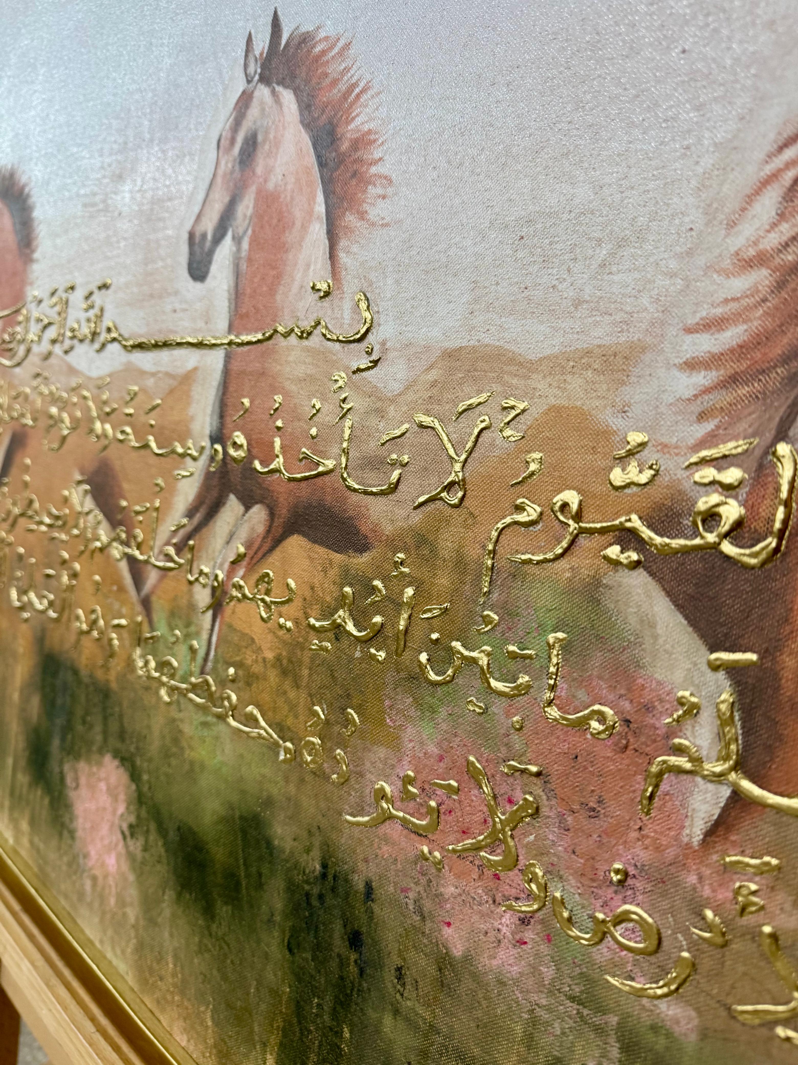 Tableau Artistique Fait Main – Chevaux & Ayat Al-Kursi