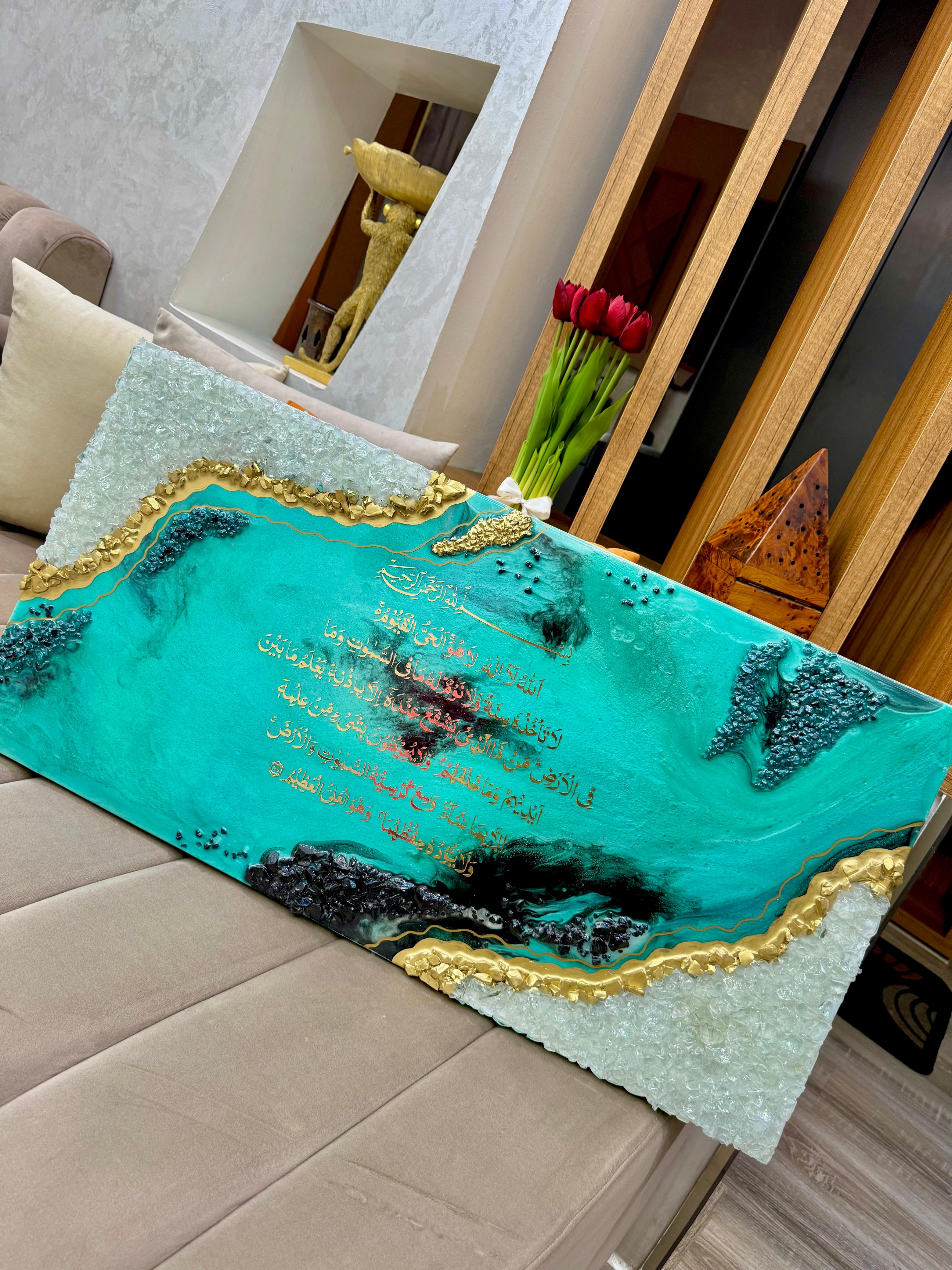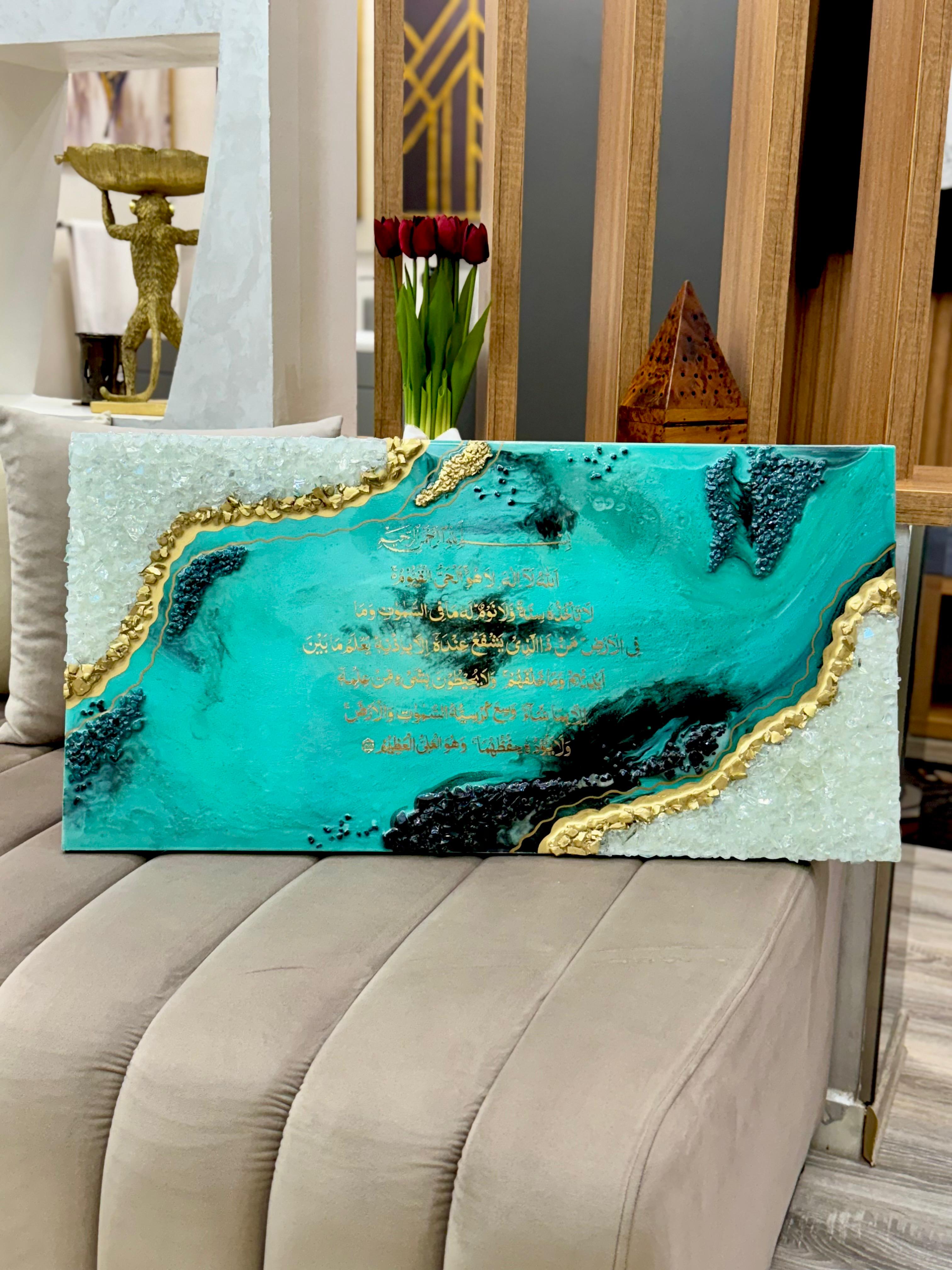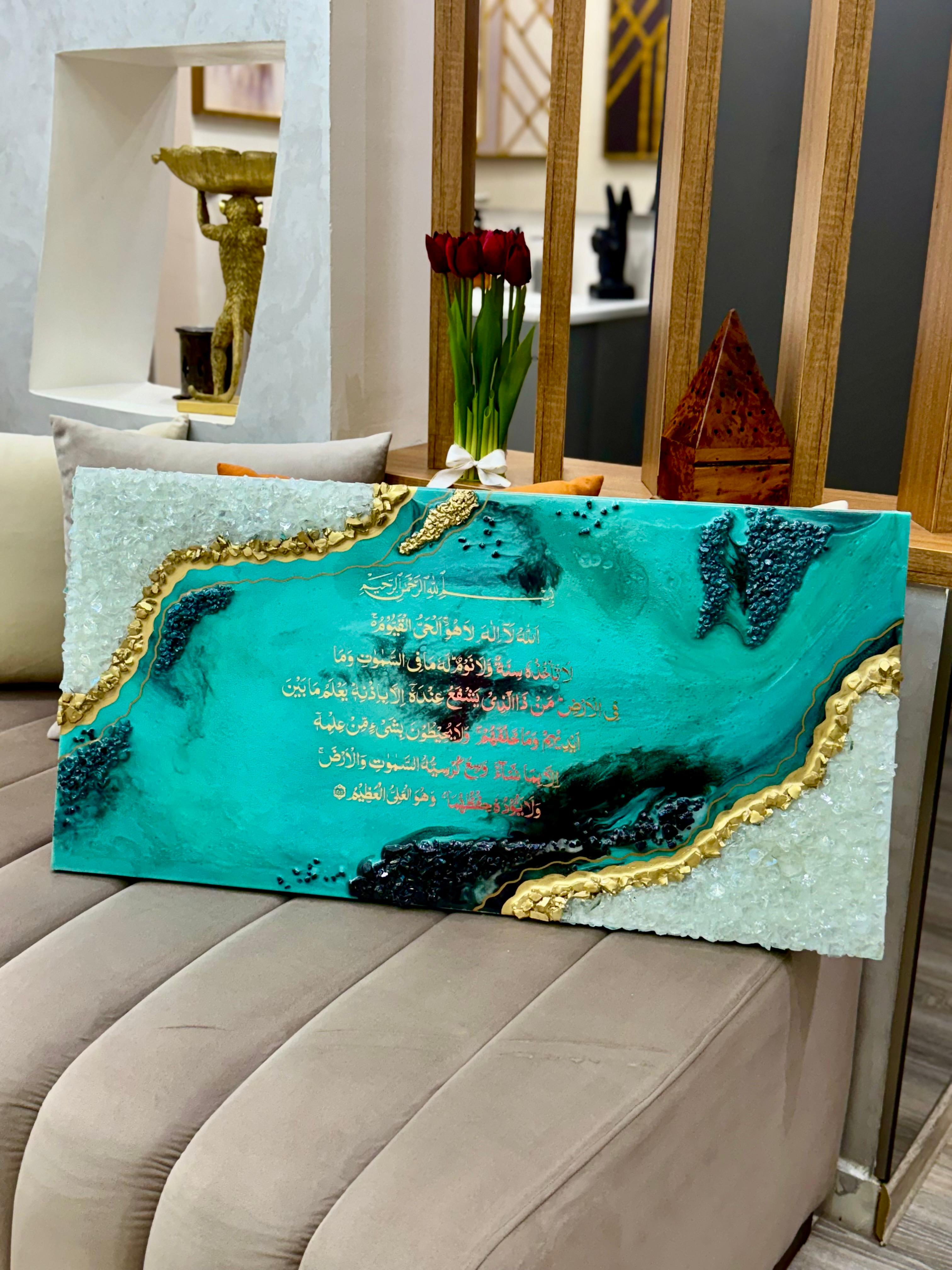 Product details✨ Tableau Ayat Al-Kursi en résine verte & cristal ✨