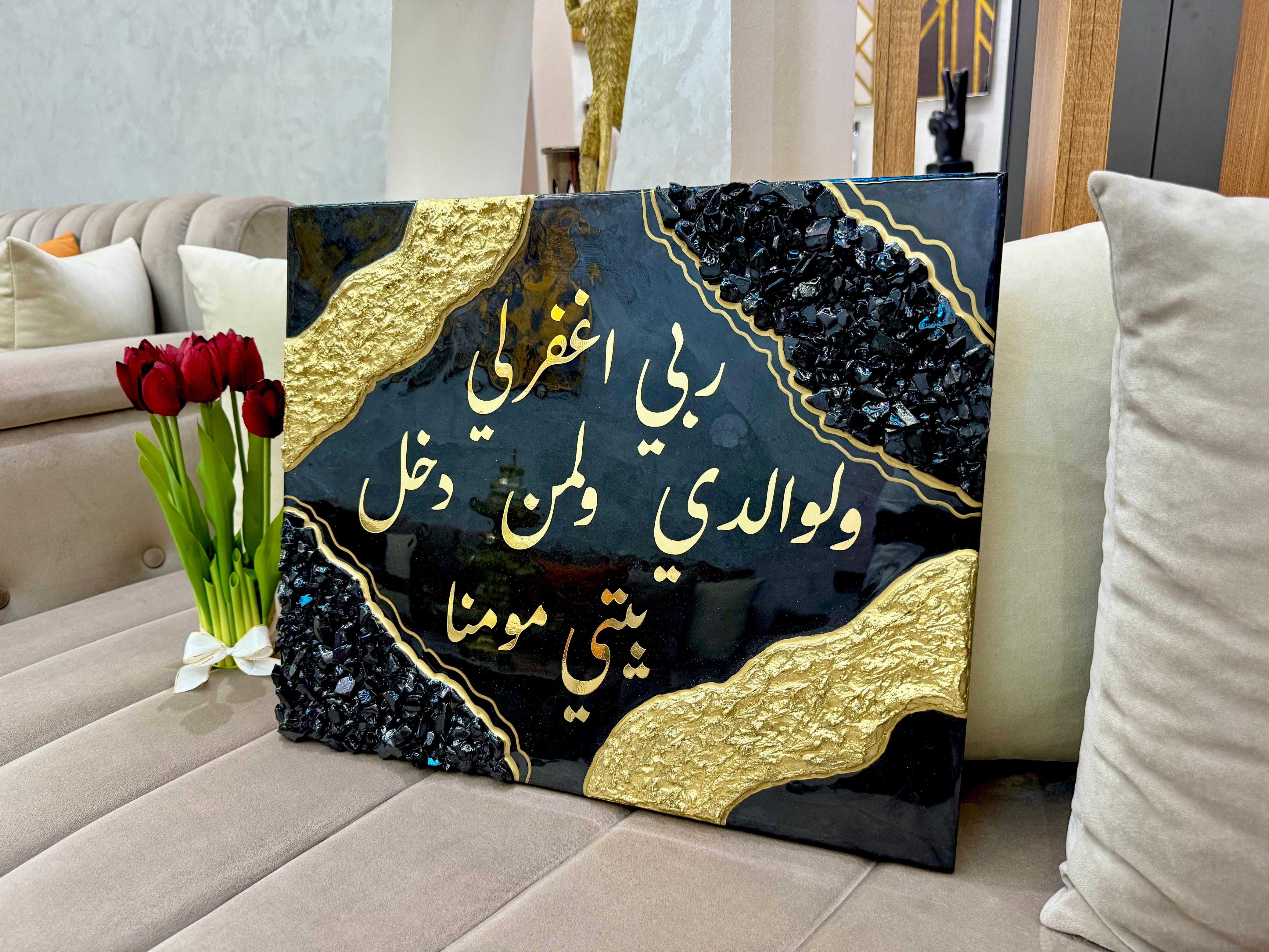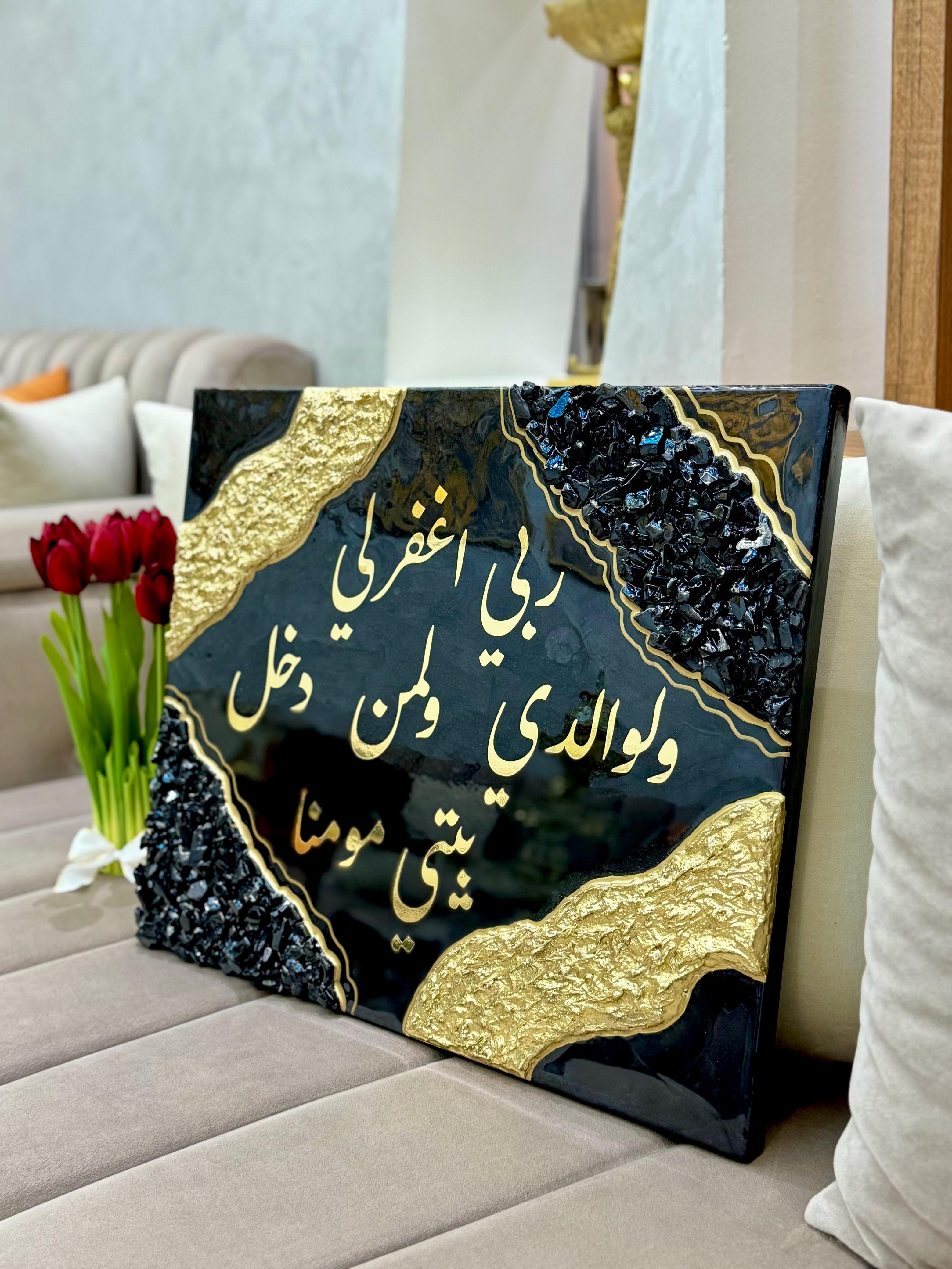 Tableau spirituel en résine noire & Or